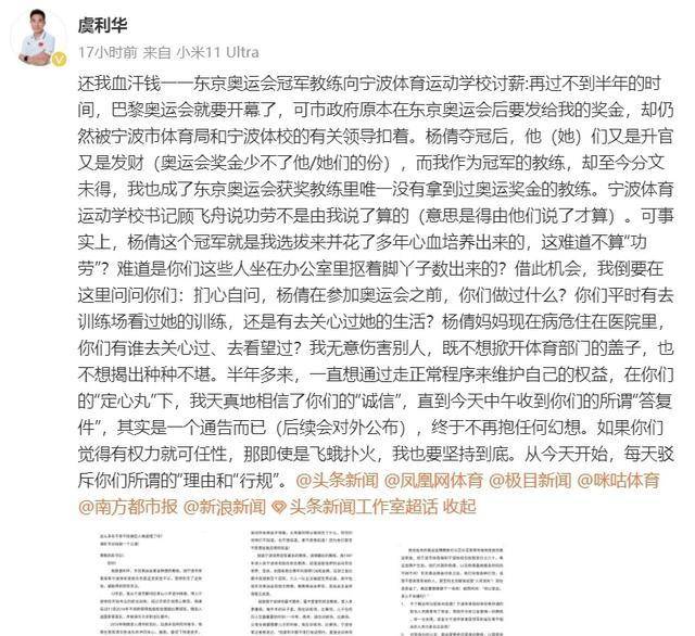东京奥运双金王杨倩的西宾虞利华讨薪激励已往柔和。他通过外交媒体宣称我方应该获取东京奥运奖金,但遭到了宁波体育局和宁波体育学校的剥削。带领们据此获取了升职发家契机。虞利华发布了3张乞助信,并赶紧登上热搜榜前三。多家媒体也进行了转发和报谈。