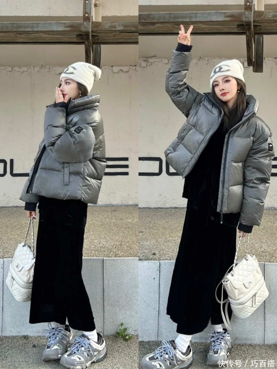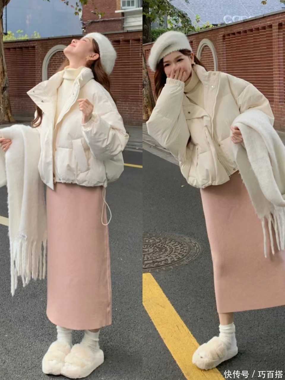 天然了,短款羽绒服+半身裙的组合对身体匀称的姐妹来说,是莫得任何间隙的,两者搭配的不及之处在这一刻也会褪色不见。