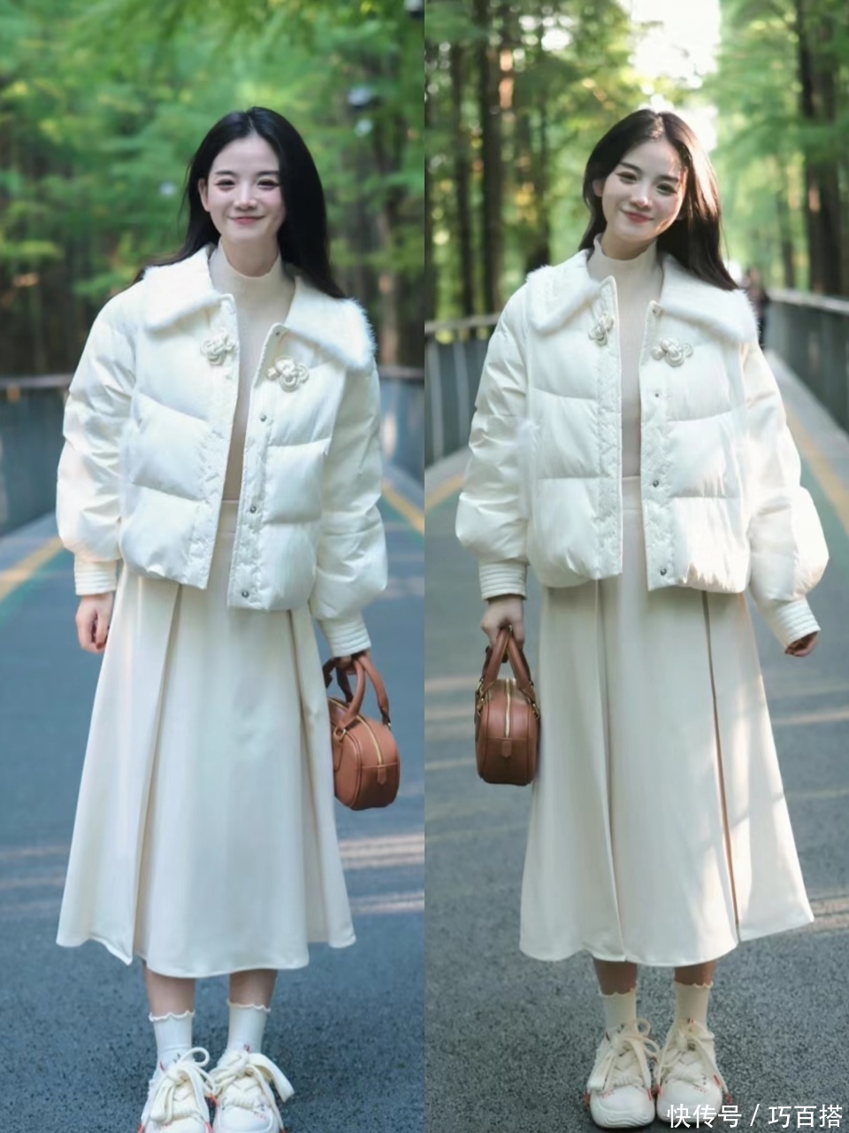 身体线条无差错的姐妹,可用超短羽绒服搭配高腰A字型半身裙,身体比例不配合,身体抽象也莫得优胜性的姐妹,遴荐博主身上这类面包服搭配宽松高腰百褶短裙,蓬松有型的遵循,遮肉显瘦看上去又相等灵动可人,相等讨东说念主可爱。